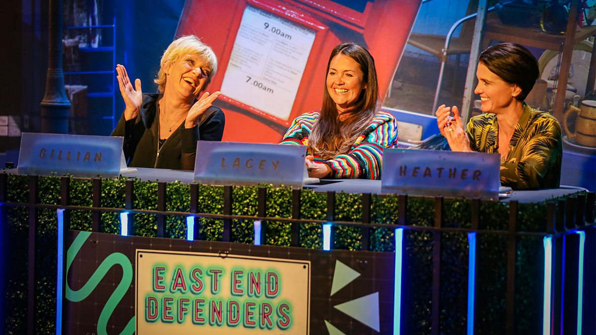 Oh yes, it’s Ladies night and the feeling is definitely right. James Bye is joined by a truly wonderful line up of Walford women. Lacey Turner is hoping to secure the win for the East End Defenders with her teammates Gillian Wright and Heather Peace. Kellie Bright has her eyes on the prize (pride) for the Walford Warriors as she is joined by Emma Barton and Shona McGarty