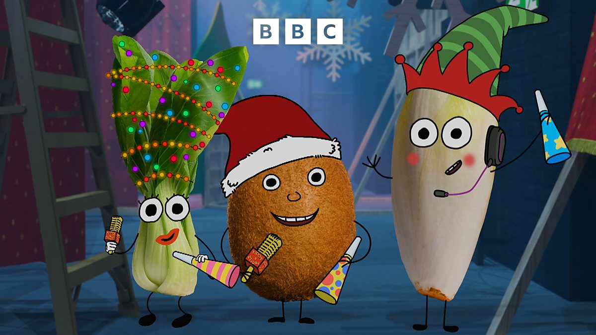 Live from the Roots and Fruits Theatre, Carrot, Potato, Parsnip and Brussels Sprout perform the festive classic Auld Lang Syne - if Potato lands from the moon on time.