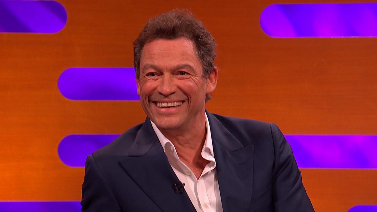 Dominic West reveals his go-to phrase for getting into character as Prince Charles when filming The Crown.
