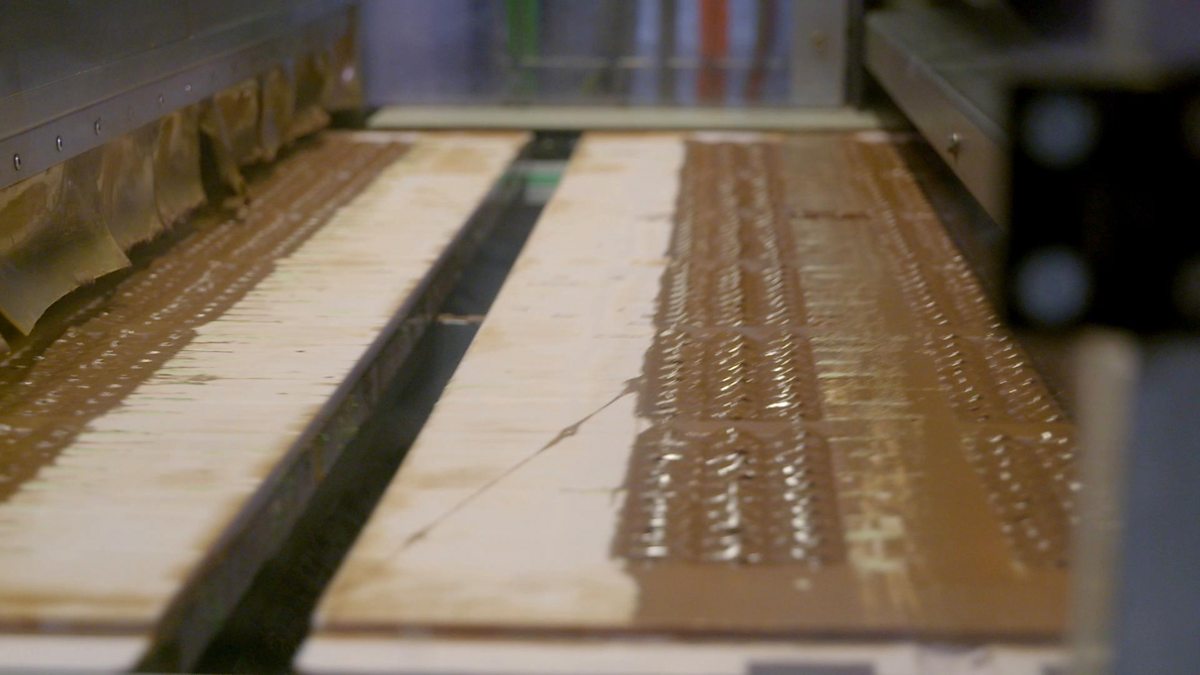 Gregg Wallace visits an enormous factory in York to learn how the shell of peppermint-flavoured bubbly chocolate bars are produced.