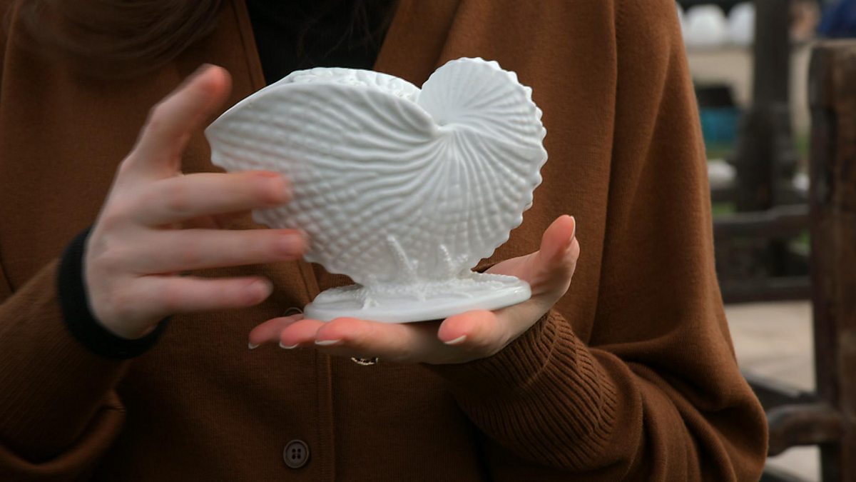 Natasha asks the fair goers in Newark if they know the purpose of this porcelain shell.