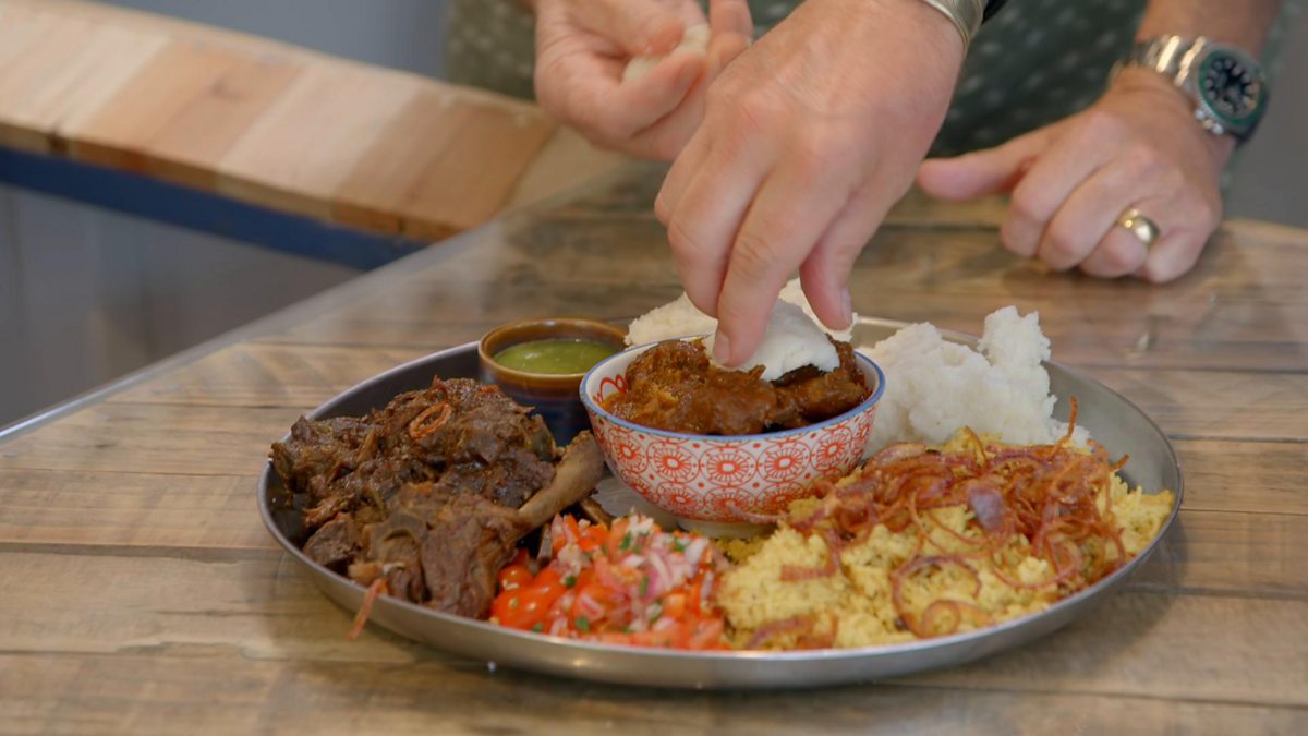 The Bikers meet Iman, the cook behind Jakoni, a restaurant dedicated to delivering an authentic East African dining experience. They are treated to a feast served with Ugali, a hearty soft bread used to scoop up meats, rice, stews, and anything else served!