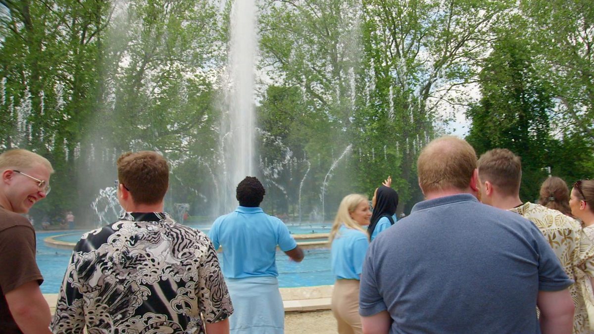 Noor and Tre bring the energy at the music fountain on Margaret Island.