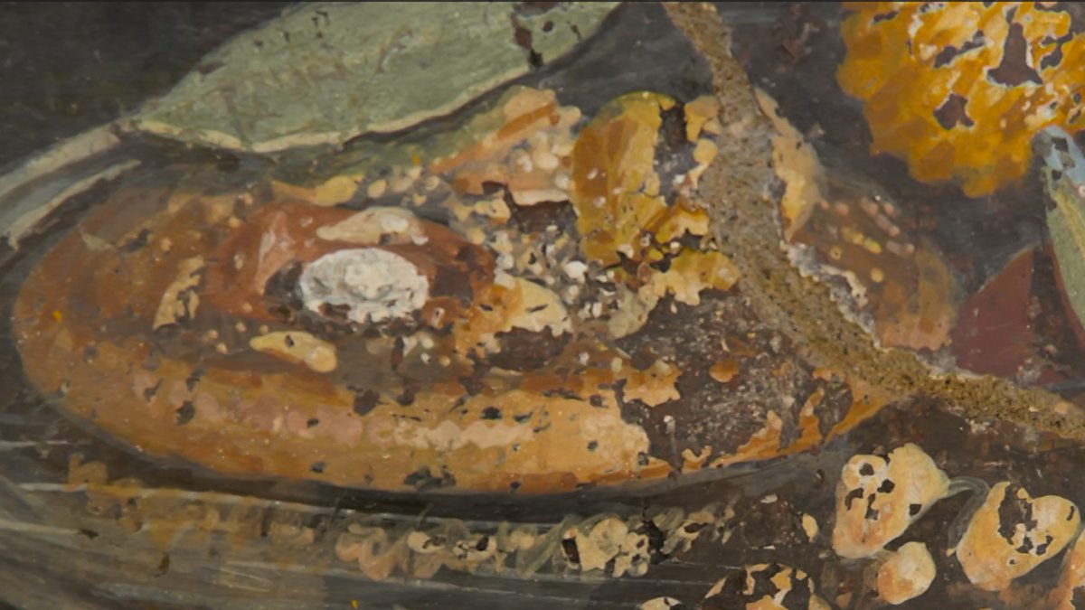 Among the ruins of Pompeii, a fascinating fresco comes to light depicting a food offering of fruit, wine and what looks like, a pizza.