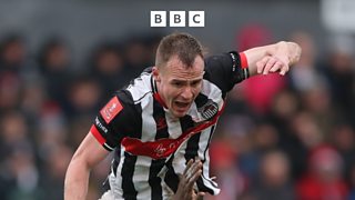 Jaze Kabia reacts to reaching 15 goals in his debut season for Grimsby Town.