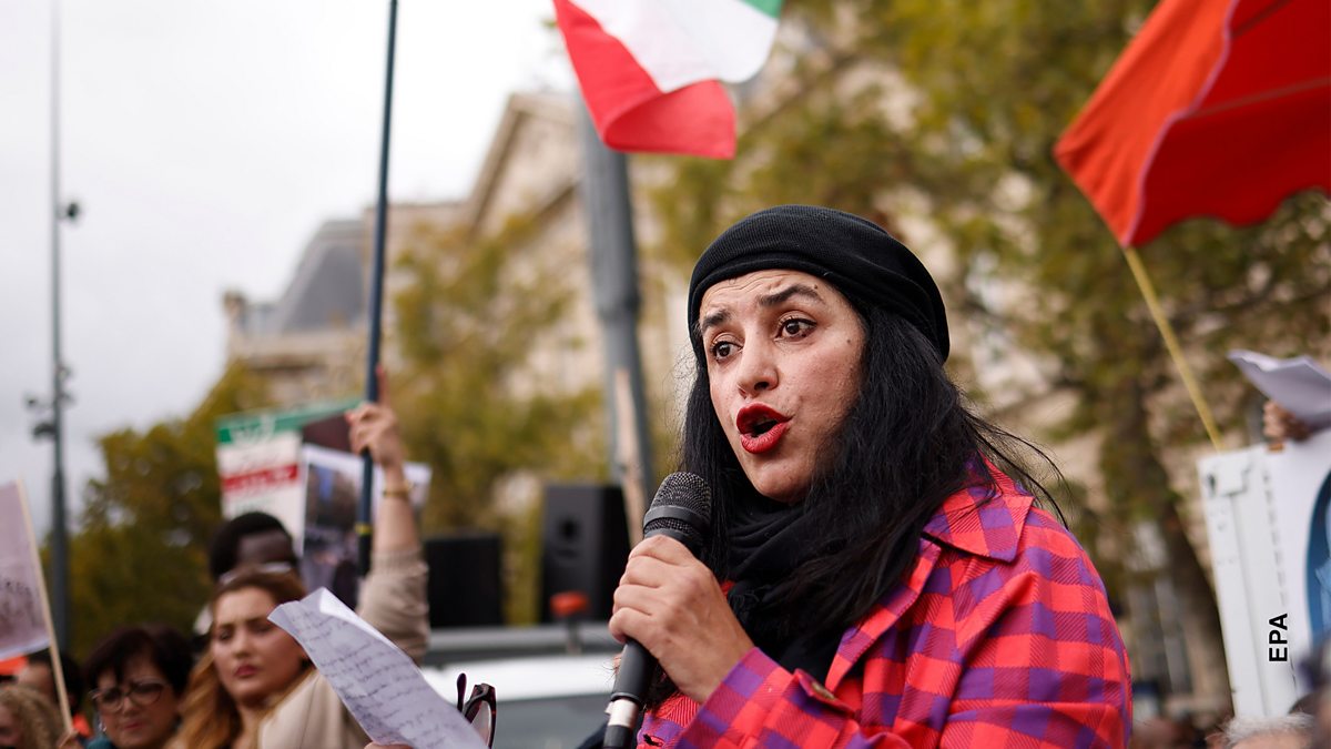 Marjane tells the BBC's Samira Ahmed: "I know what the role of the diaspora is...the best that we can do is that we can be the loudspeaker of our people, also to give them courage, also to bring the words to the world and to tell them 'look the whole world is interested in you'."