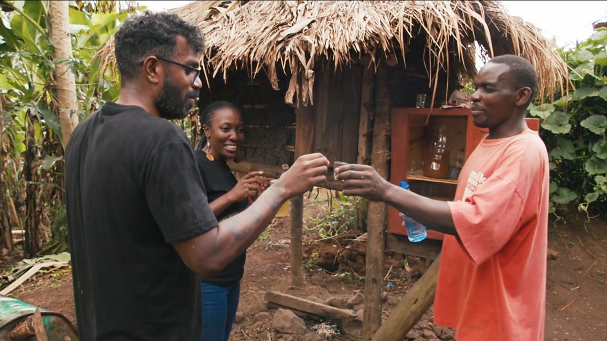 Romesh meets Mugabe Robert, whose family make banana-based drinks for the local village.