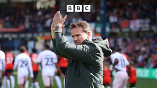 Argyle head coach Tom Cleverley reacts to the 3-1 away win at AFC Wimbledon.