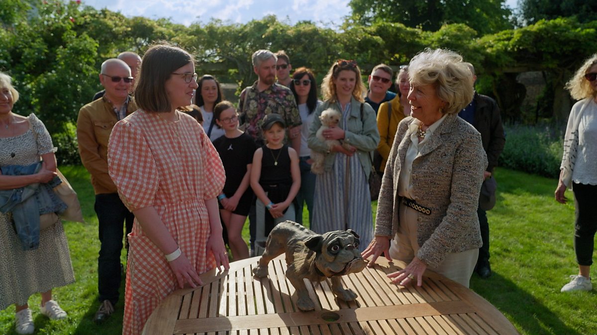 Hilary Kay surprises the crowd with an animated Victorian Bulldog marionette.