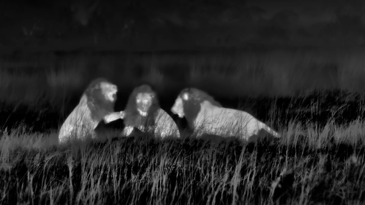 The Xudum pride's dominant male lions battle an intruder to protect their family.