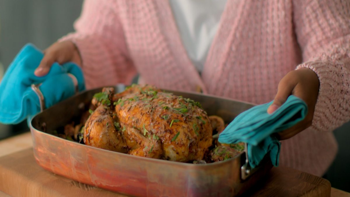 With a twist on a usual roast, Nadiya makes a chicken and chickpea version that she can spin into a whole new meal.