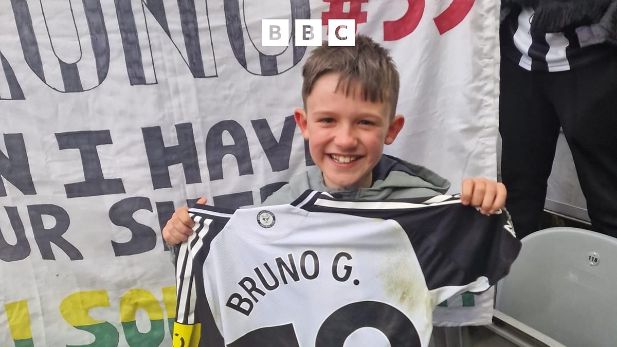 Korey was given the match worn shirt from Bruno Guimaraes after the win against Arsenal.
