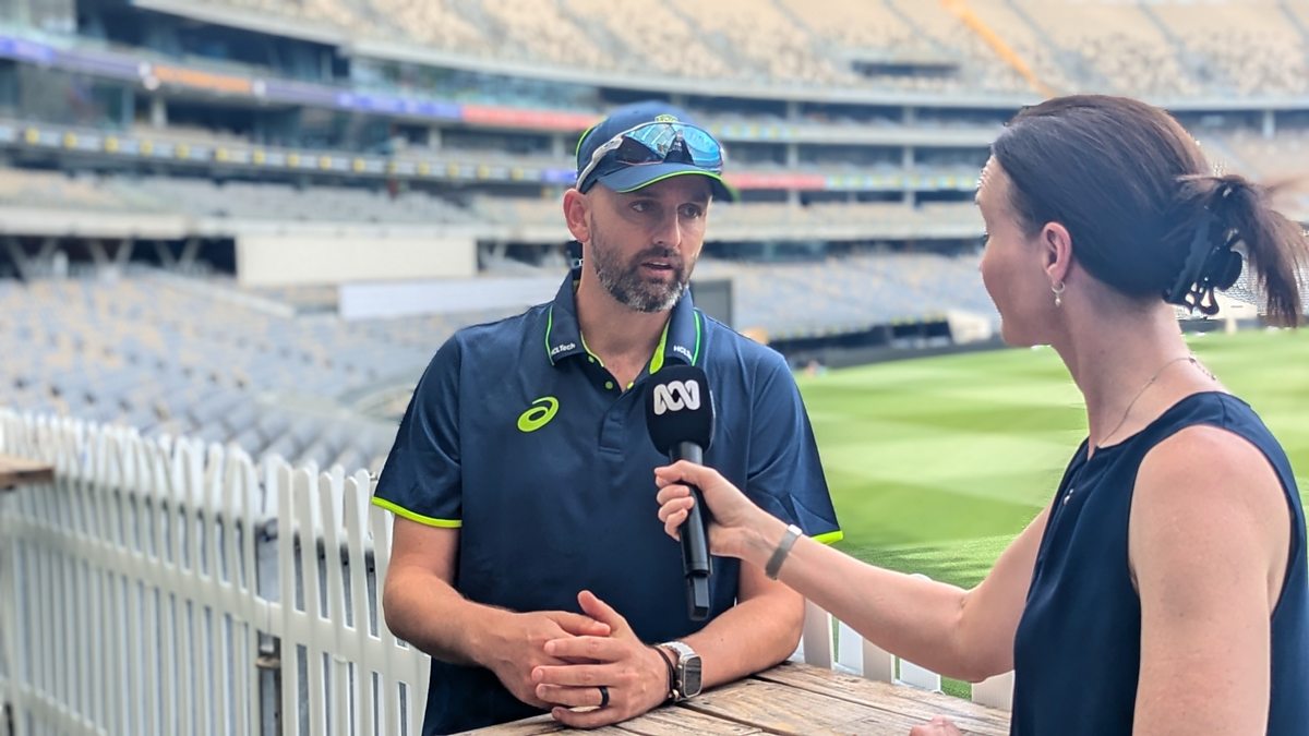 Photo: Australia spinner Nathan Lyon speaks to Stumped's Alison Mitchell ahead of the first Test of the Border-Gavaskar Trophy series. (Credit: ABC Australia)