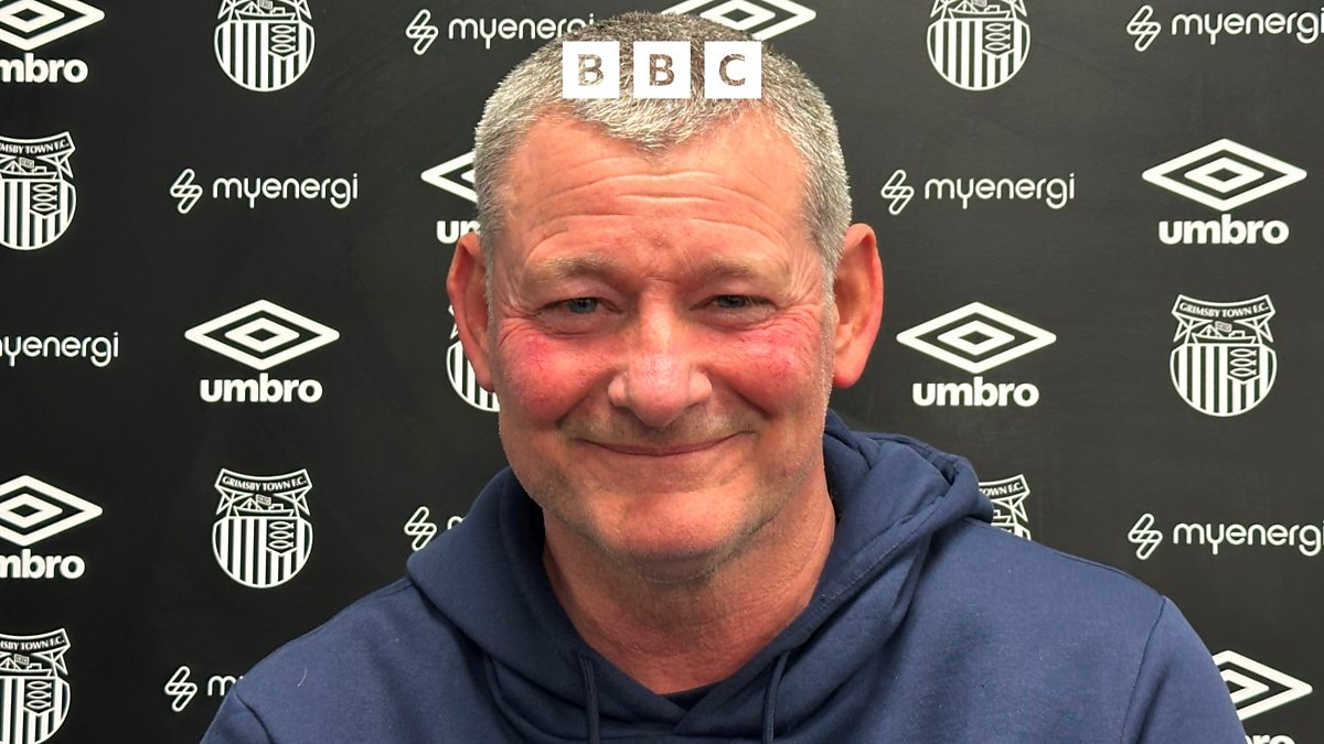 Grimsby youth team boss Neil Woods talks to Matt Dean before their Cup tie with West Ham.