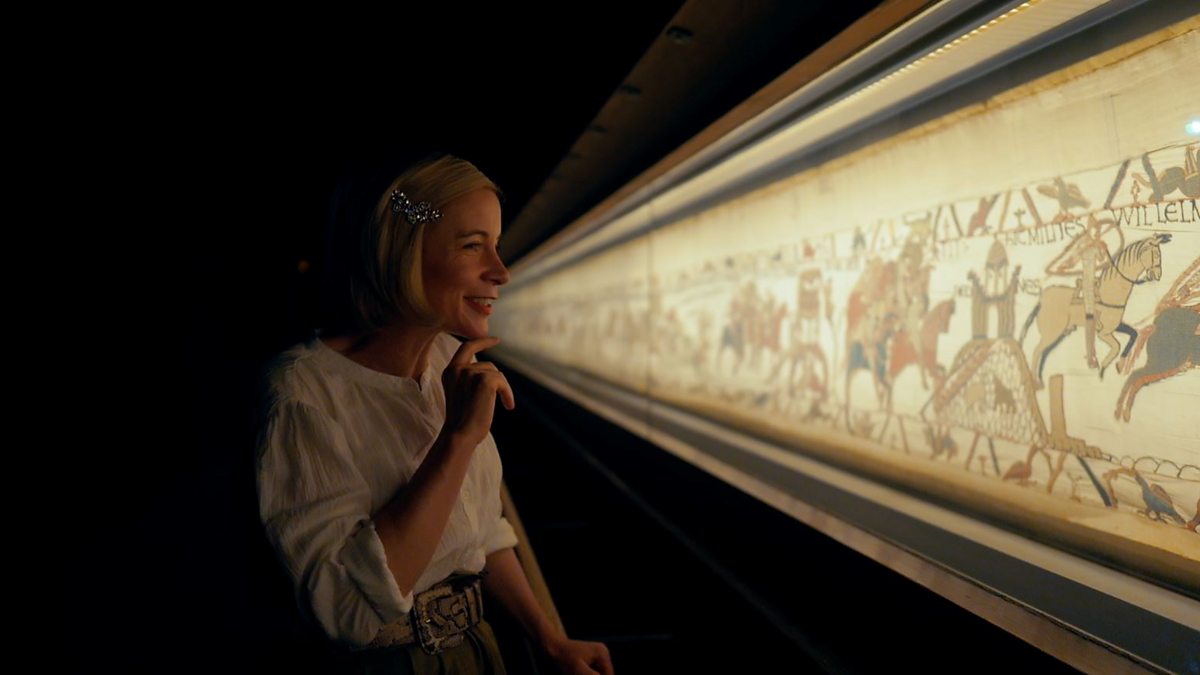 Lucy Worsley visits the Bayeux Tapestry - a 900 year old depiction of the Battle of Hastings. She discovers it's not a tapestry at all but an embroidery - made by women.