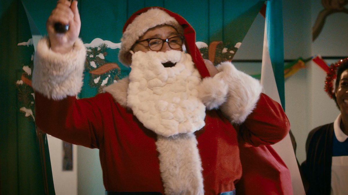 At St. Cuthbert's, the children in the ward, including Teddy and Karen, count down to Santa's arrival. A cheer goes up as Fred, dressed as Santa, makes his big entrance.