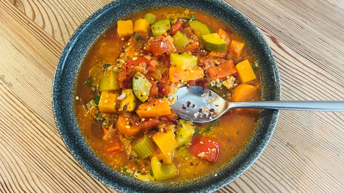 Kat's at Los Moros in York learning how to make an Algerian couscous & vegetable stew