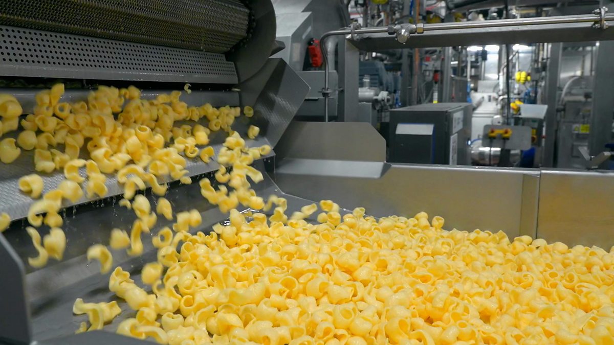 At the Walkers factory in Lincoln, 1.8 million potato starch curls cascade out the fryer every hour.