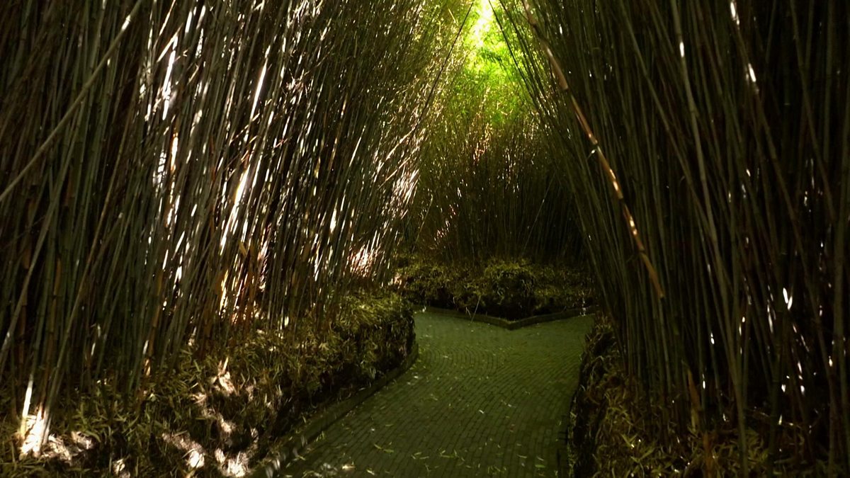 Monty explores a spectacular structure at Alnwick Castle. The size of a large building, this arched structure has walls, roof and windows made from plants.