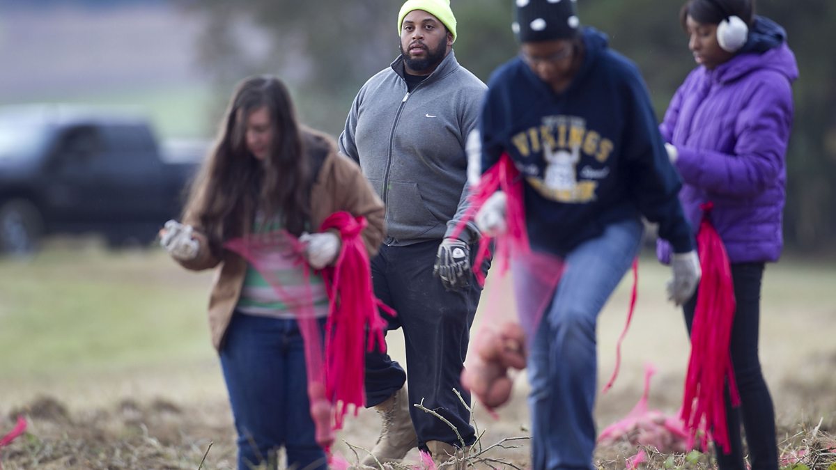 Image: Former NFL player Jason Brown works with volunteers as they harvest sweet potatoes for the needy on his First Fruits Farm near Louisburg, N.C. (Credit: Robert Willett/Raleigh News & Observer/MCT)
