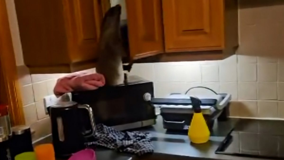 The family were surprised by the uninvited guest who wreaked havoc in their kitchen in Shetland.