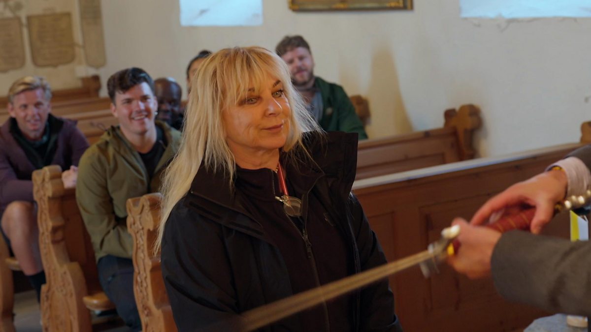 At the Bruderschaft chapel, the pilgrims are initiated with a traditional sword ceremony.