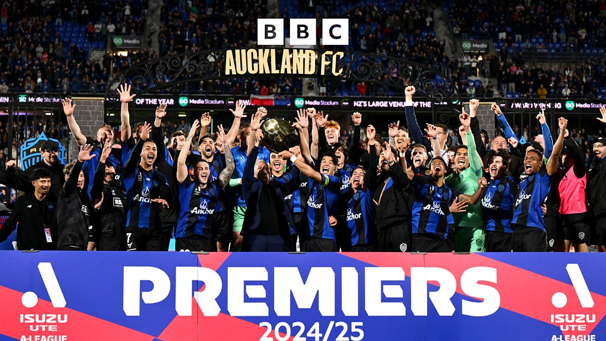 Photo: Auckland FC celebrate with the Premier's Plate following the round 28 A-League Men match between Auckland FC and Perth Glory at Go Media Stadium, on April 27, 2025, in Auckland, New Zealand. (Credit: Getty Images)