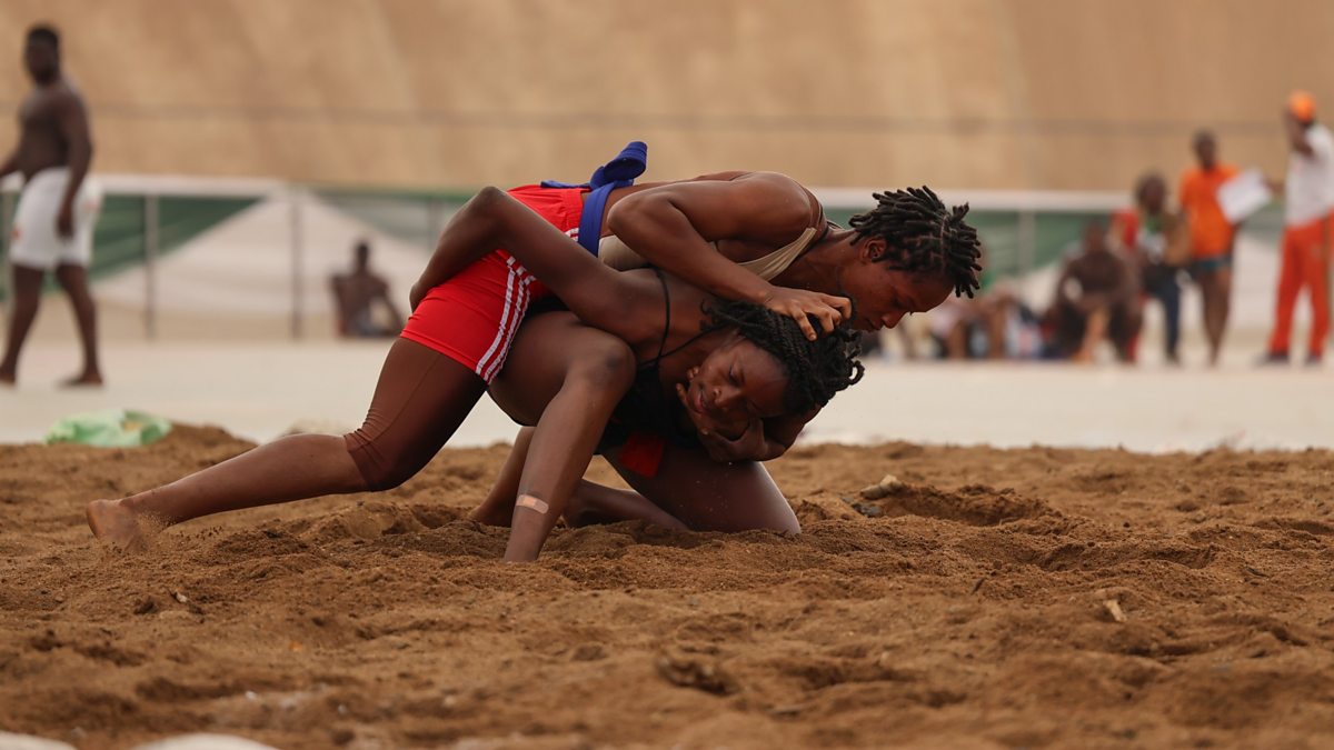 Photo: Wrestlers compete during the 13th ECOWAS Africa Wrestling Tournament which brought together the best wrestlers in the West African region, was organised in collaboration with the Economic Community of West African States (ECOWAS) and the Nigerian National Sports Committee at Moshood Abiola National Stadium in Abuja, Nigeria on March 06, 2025. (Credit: Anadolu via Getty Images)