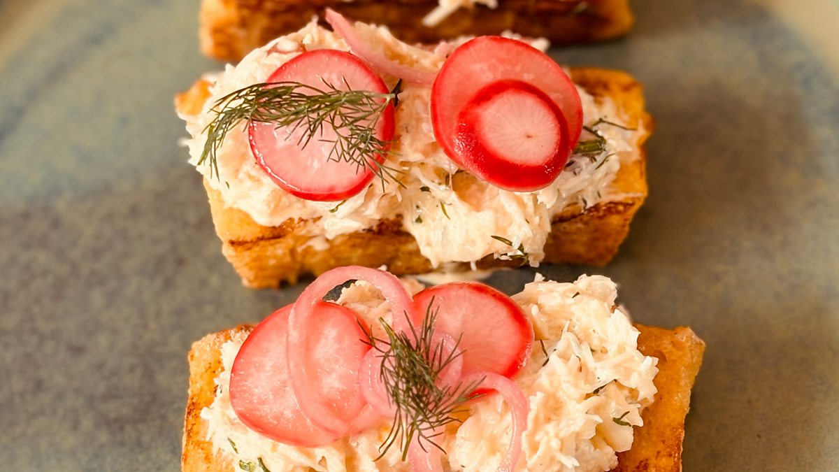 Savoury French Toast With Crab Salad, Pickled Radish, Dill Mayonnaise