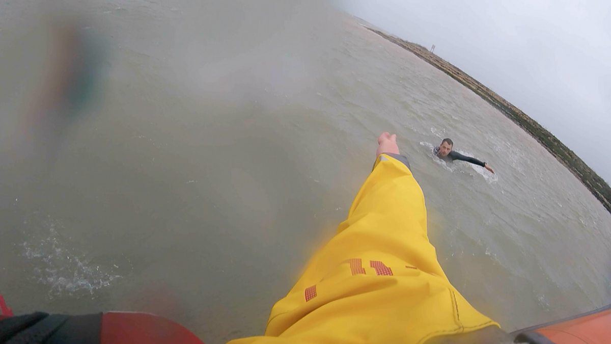 With a storm battering the south coast, the Portsmouth crew launch to the rescue of a windsurfer.