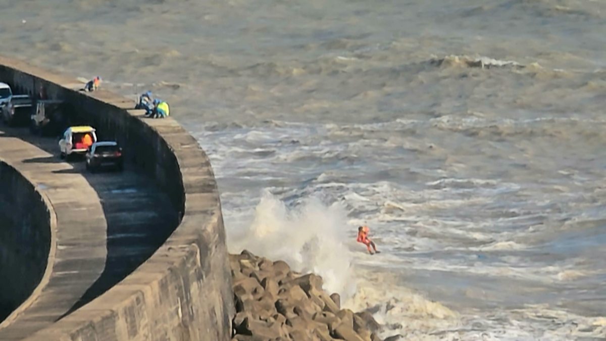 The challenging rescue of a yachtsman on the breakwater