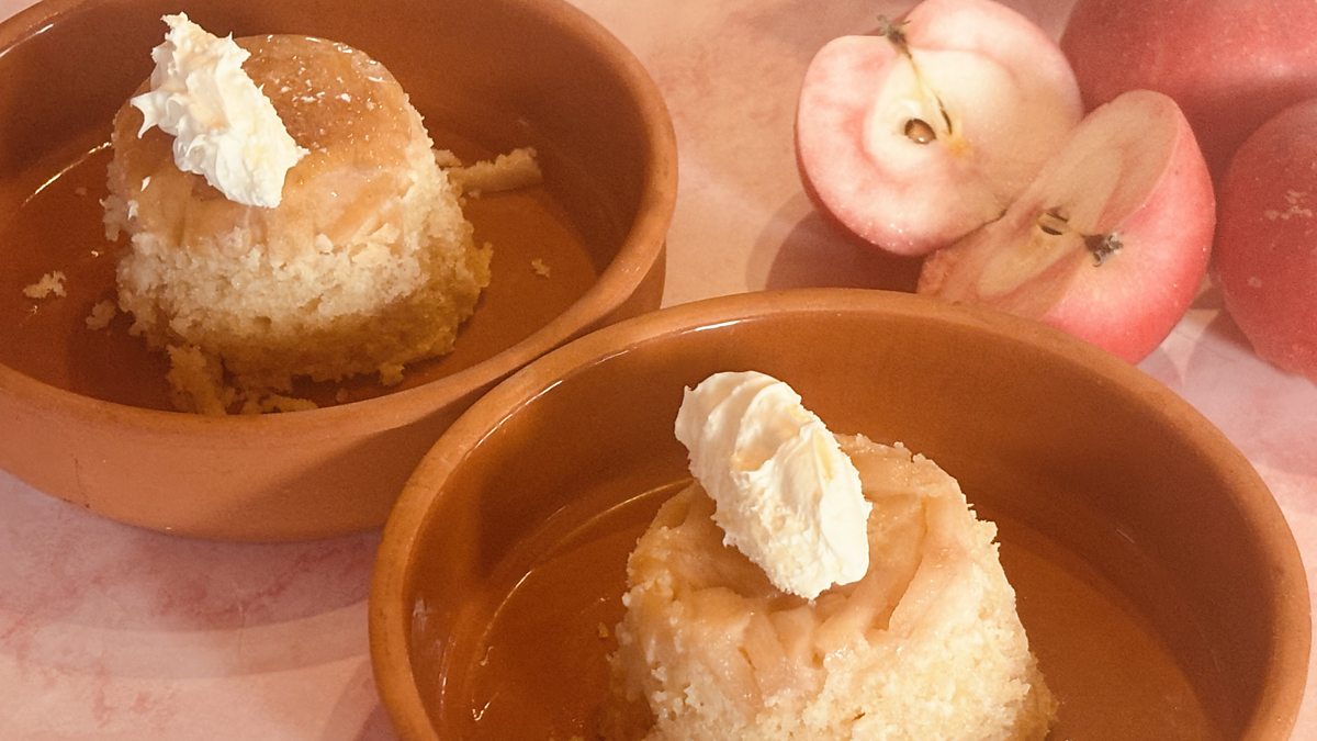 Apple sponge puddings with clotted cream