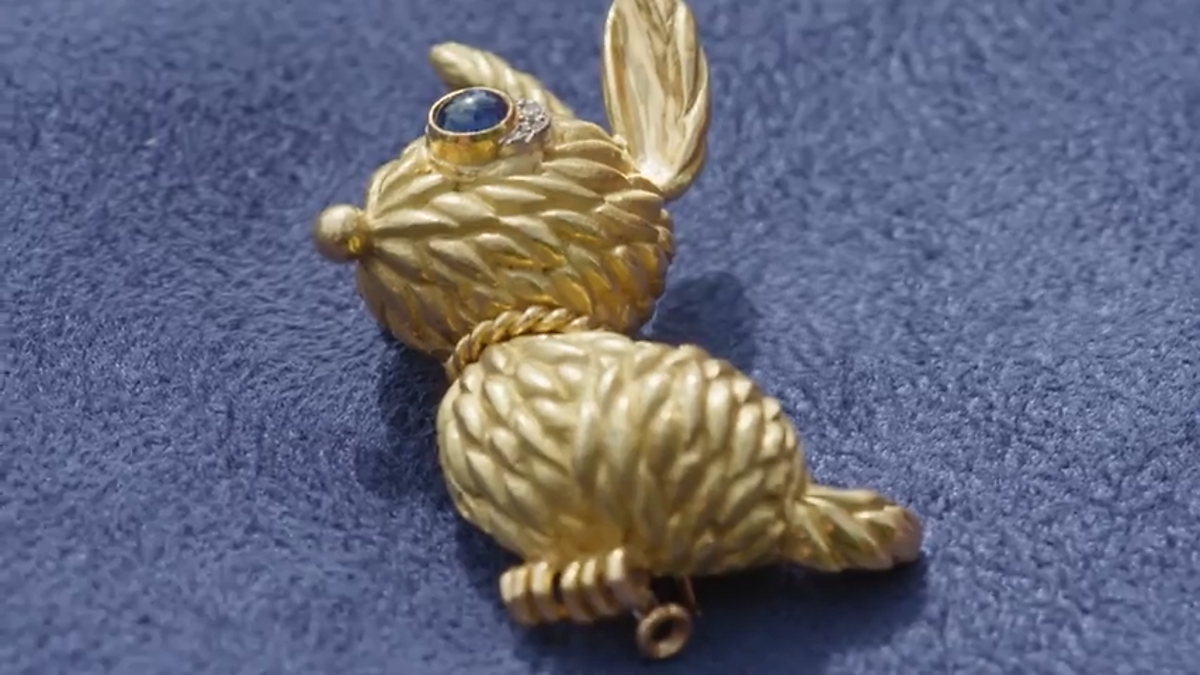 Joanna Hardy appraises a 1960s gold bunny brooch brought to the Roadshow in a plastic bag