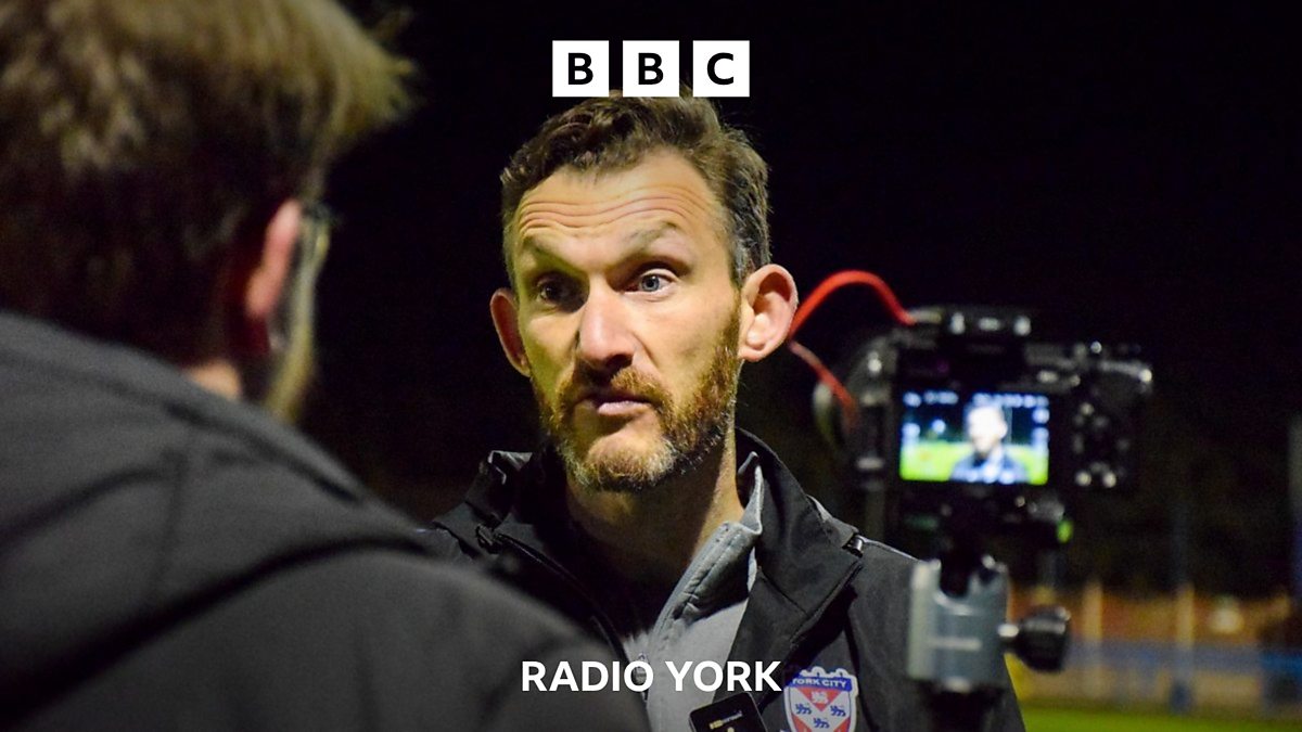 York City's head of youth Dan Wilson speaking to Peter Spencer, ahead of their FA Youth Cup game against Boro Rangers under 18's.
