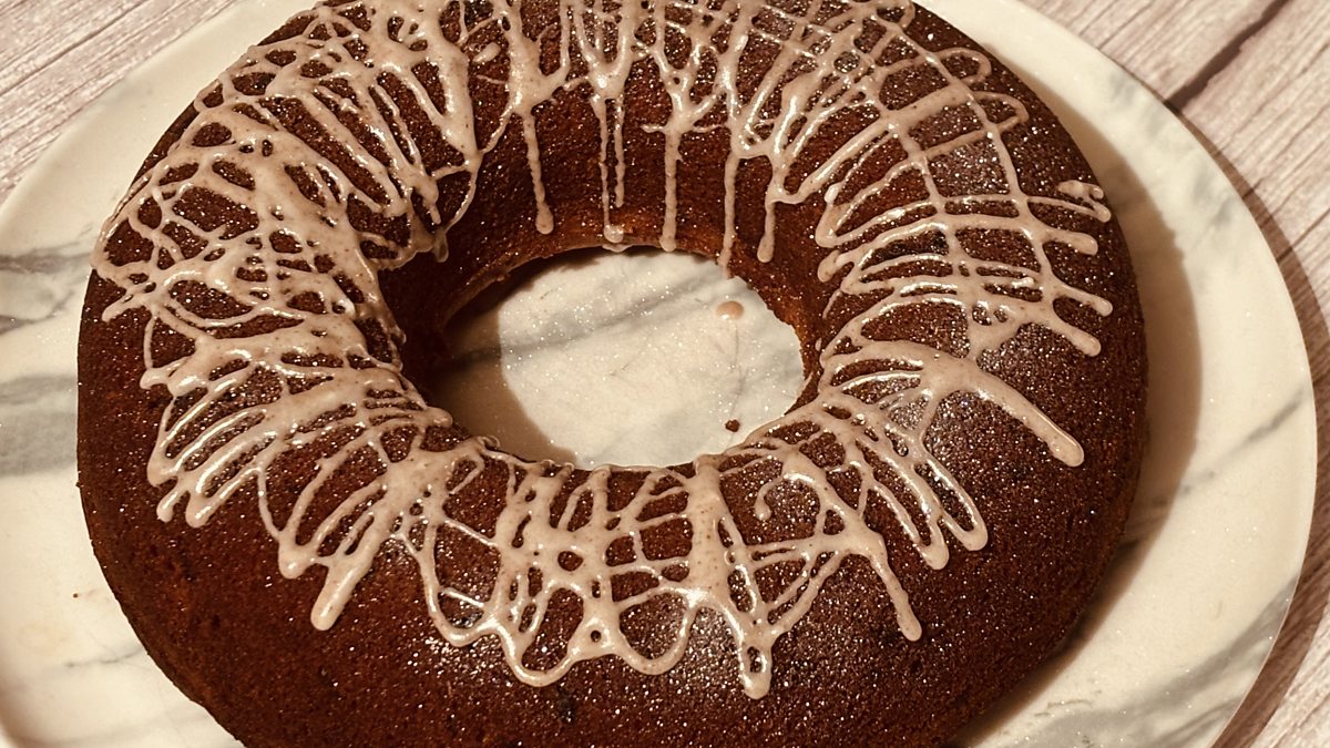 Mix the flours with the baking powder,spices, figs, sugar and walnuts. Add the wet ingredients and whisk to a smooth batter. Spoon into the tin and bake for about 40 minutes or until an inserted skewer comes out clean.