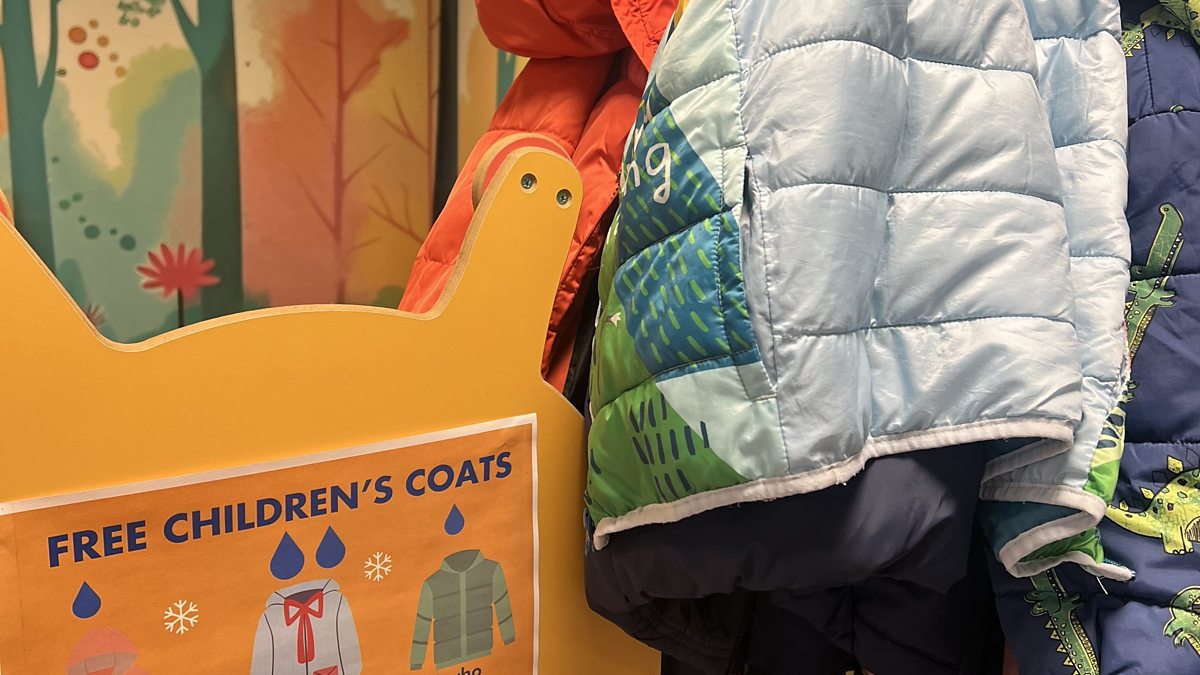 Agnes from Libraries Unlimited and Lisa from Barnstaple Library on offering free coats