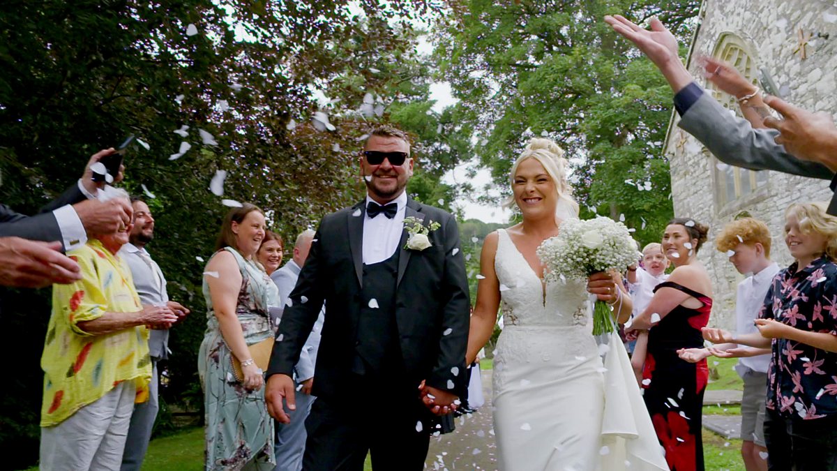 Mae thema pêl-droed priodas Nicky ac Adam wedi dewis gan eu plant Kian a Kai sy'n gefnogwyr Manchester United. A football filled wedding celebration for Nicky & Adam from Llanbedrog.