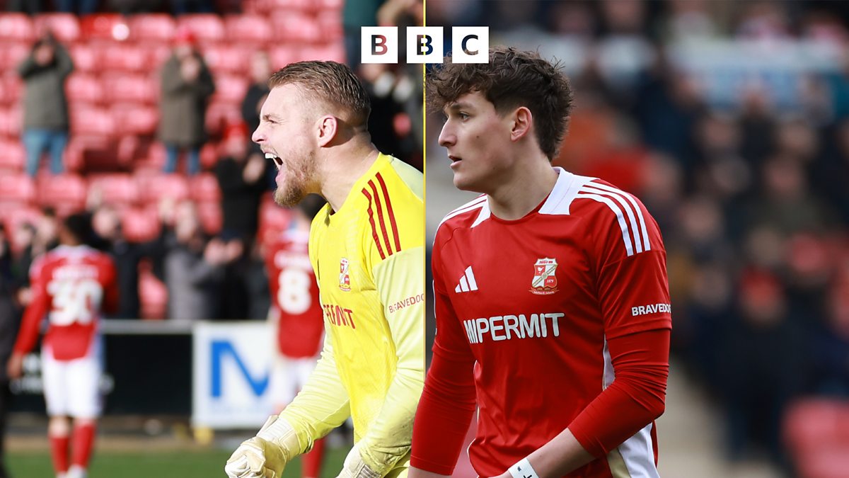 Connor Ripley and Fletcher Holman at full-time with BBC Radio Wiltshire's Shaun Hodgetts.
