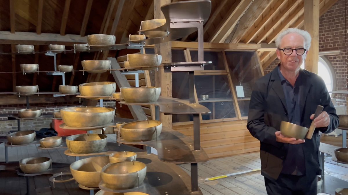 It was created by Jem Finer from The Pogues, using 234 Tibetan singing bowls.