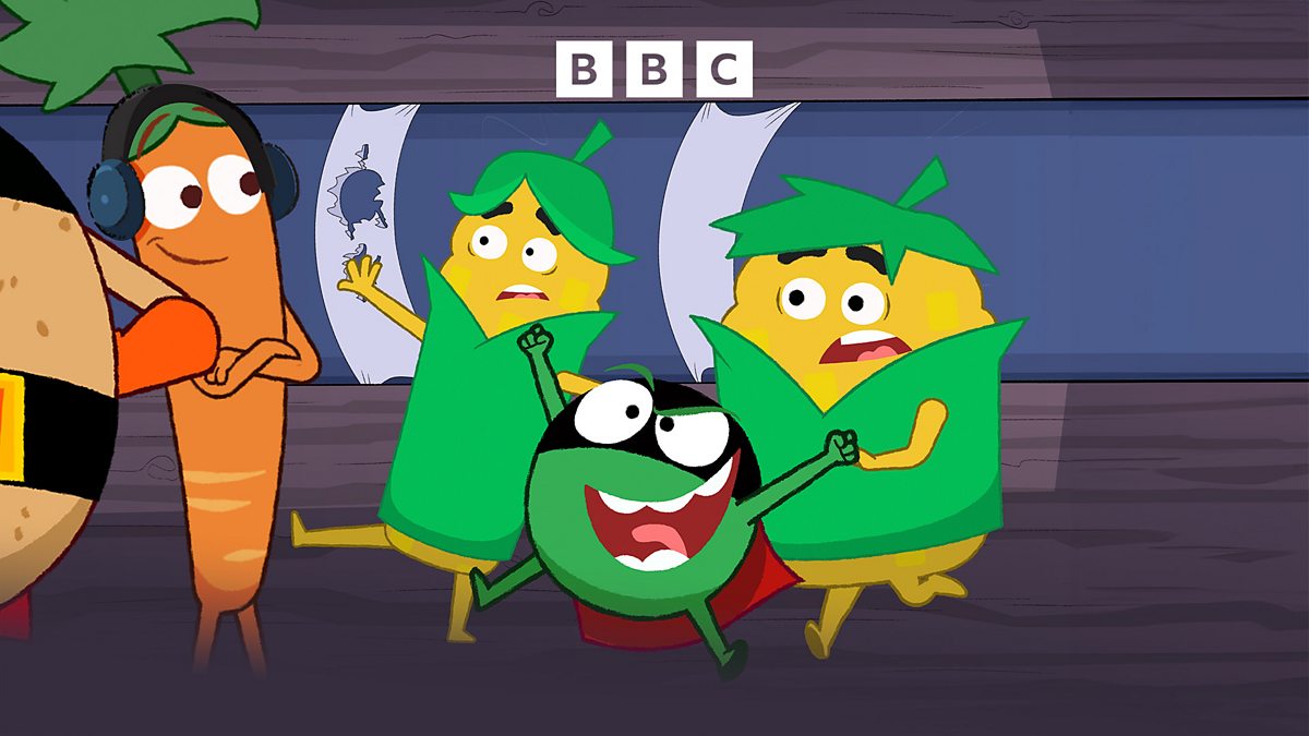 DJ Supertato and DJ Carrot are using their suction boots to climb up to the supermarket air vents to investigate some strange and spooky sounds for the Tato Radio Show. But when they discover that it is just Corn and Cob making the sounds, they realise they have been tricked by Evil Pea — and now they’re stuck in a maze of air vents, and the only way out is on the other side of the supermarket. Not only that, Evil Pea plans on freezing Tato Tower!