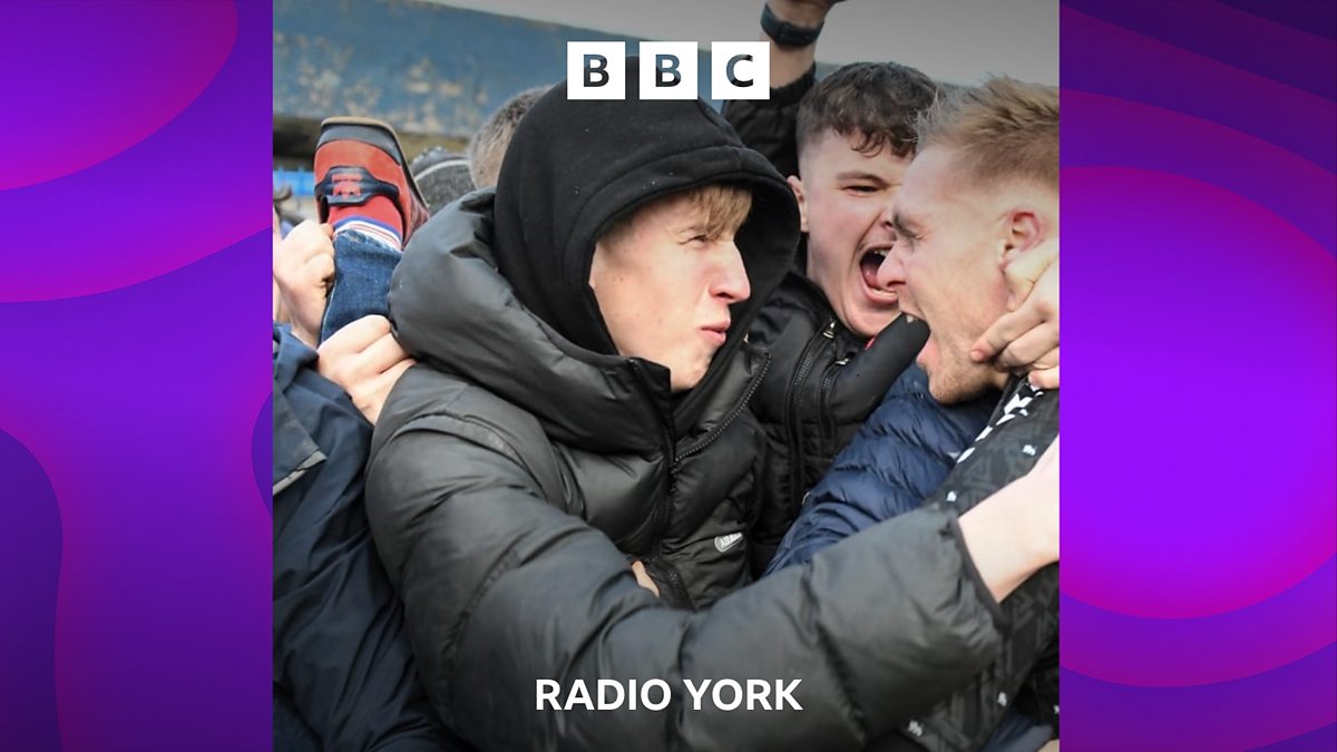 Tim Steere speaks to the York City fans involved in the viral "red trainer" picture in the aftermath of Dan Batty's goal, from the 3-0 win over Wealdstone.