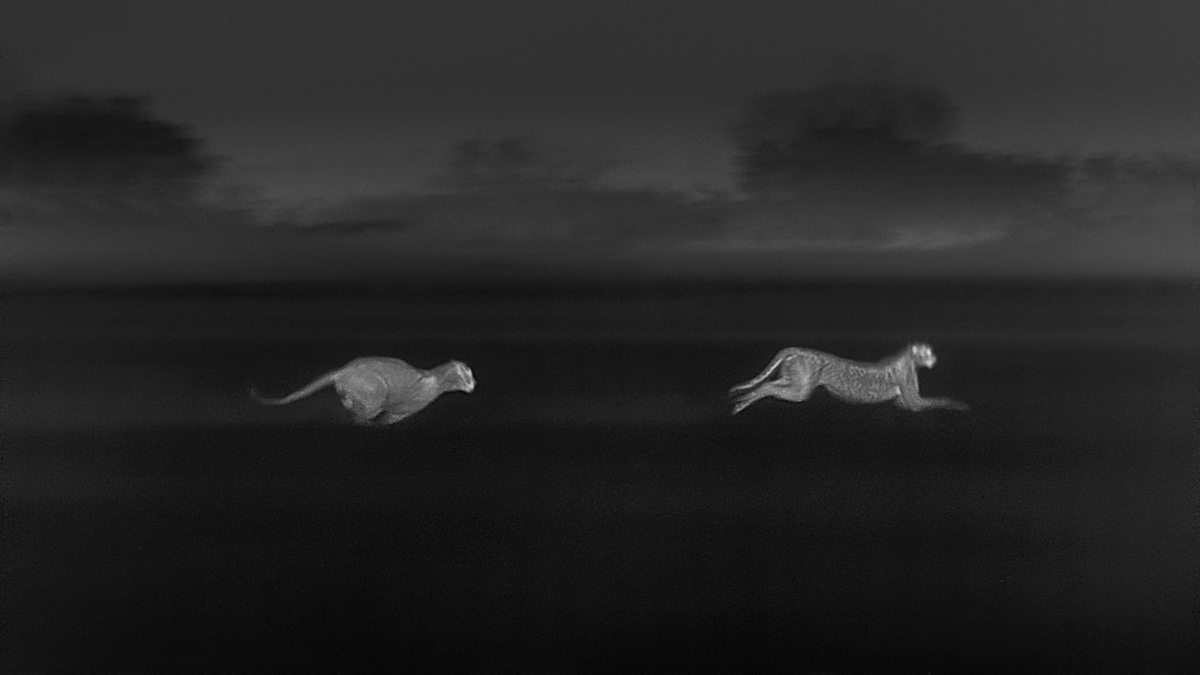 Pobe's cubs are under threat at night from a leopard after their meal.