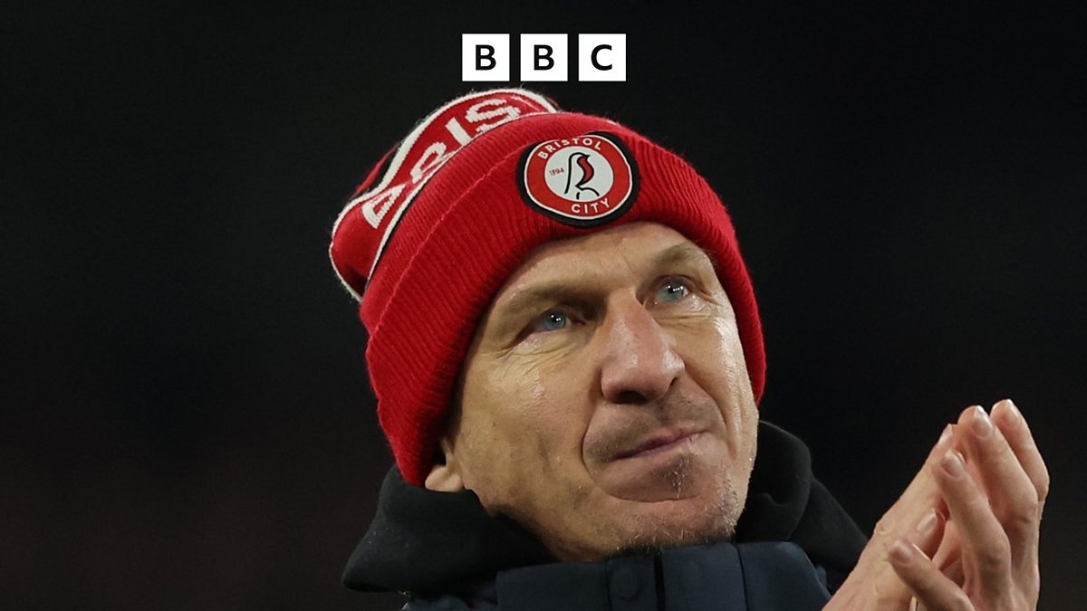 The Bristol City head coach speaks to Ed Hadwin after City beat Blackburn Rovers 2-1 at Ewood Park in the Championship.