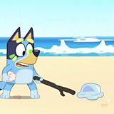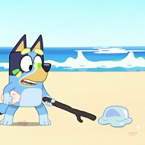 Mae Mam yn mynd am dro ar ei phen ei hun ar hyd y traeth ac mae Blwi yn rhedeg i geisio dal i fyny gyda'i. Mum goes for a walk by herself along the beach but Blwi runs to catch up with her.