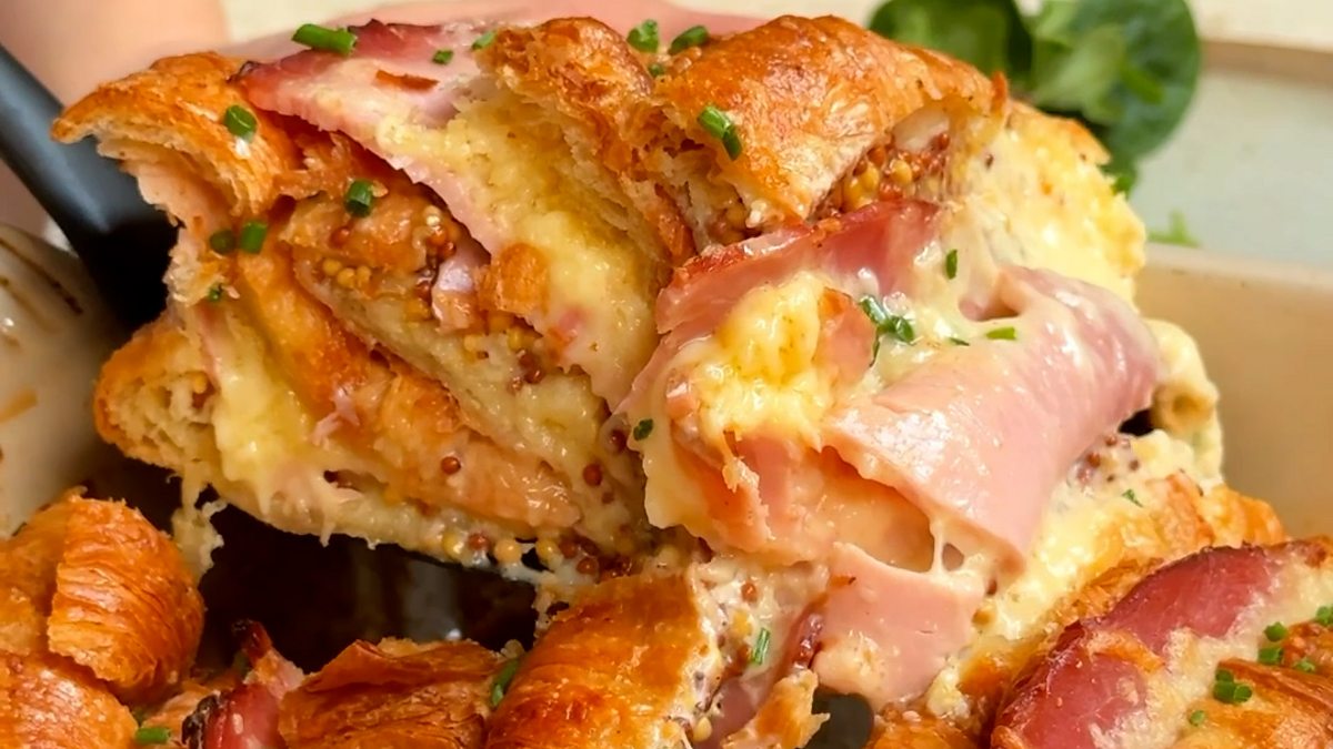Cheese and ham croissant bake