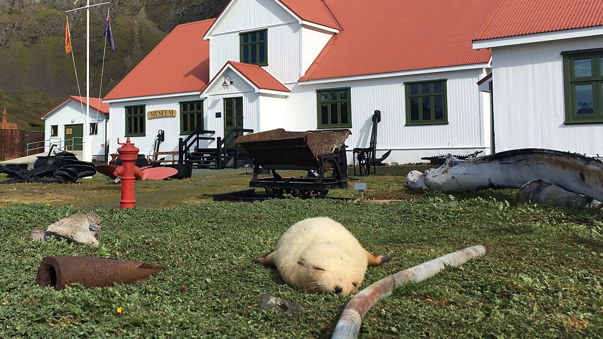 (Picture: A seal pup in front of the museum, Credit: South Georgia Museum)