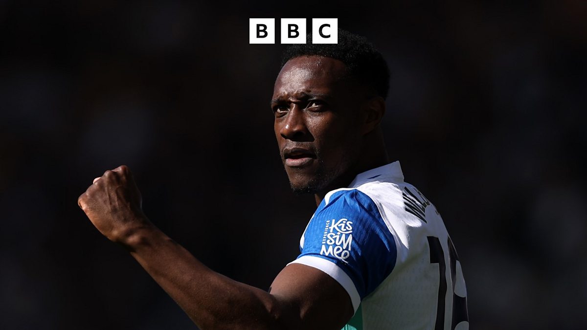 Brighton & Hove Albion striker Danny Welbeck reacts to the 2-1 win over Liverpool