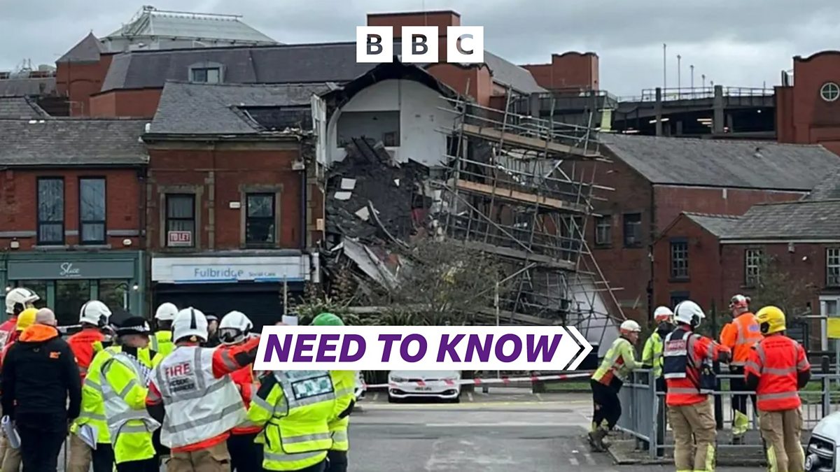 Two people have been hospitalised after a building collapsed on King Street in Oldham. Five people were inside and managed to escape, Greater Manchester Fire and Rescue Service (GMFRS) said. Police have warned people to stay away from the area where roads have been shut and there is a large build-up of emergency services vehicles.