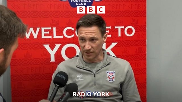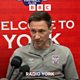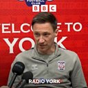 York City manager Stuart Maynard speaking to Peter Spencer, ahead of their trip to Tamworth.