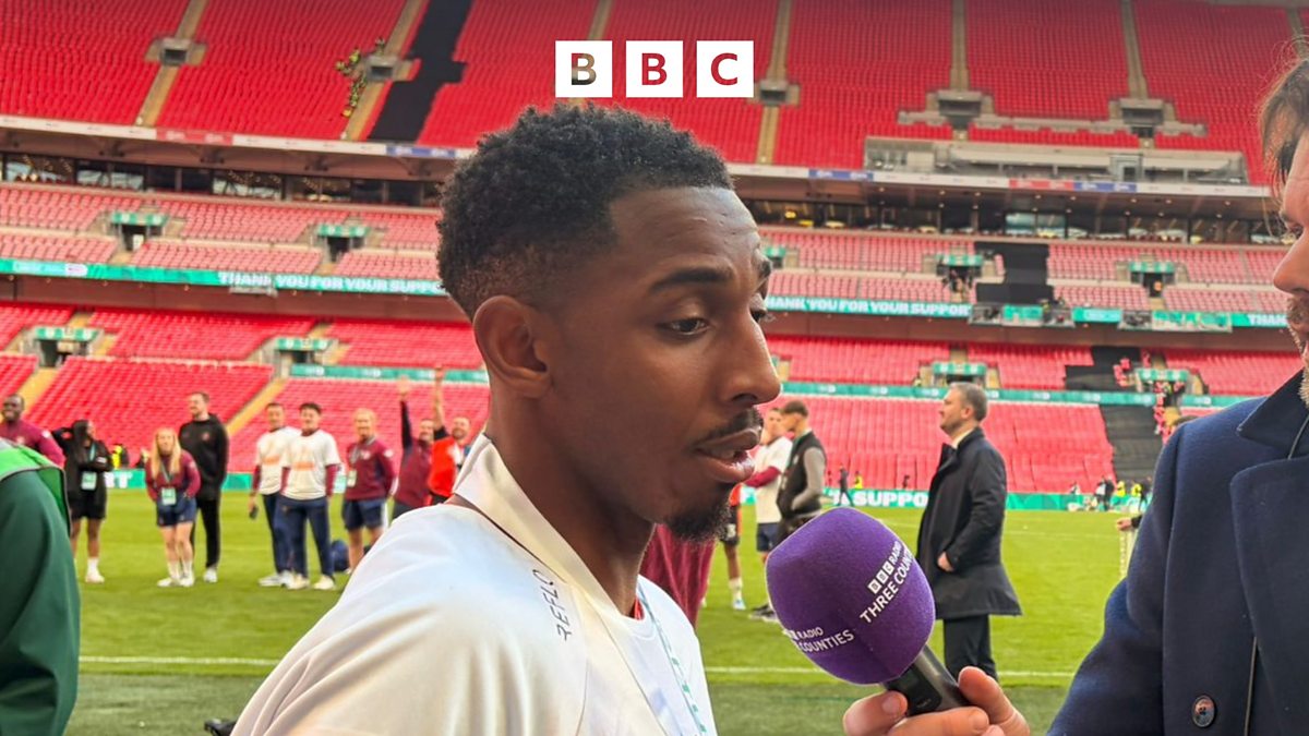 Isiah Jones reacts after Luton win the EFL Trophy 3-1 against Stockport County.